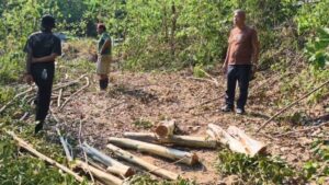 วินิจ เจ้าหน้าที่พิทักษ์ป่า นำกำลังลงพื้นที่ตรวจสอบ หลังได้รับแจ้งมีการลักลอบตัดไม้ จุดเกิดเหตุอยู่บริเวณพื้นที่ติดกับโครงการป่าสิริเจริญวรรษอันเนื่องมาจากพระราชดำริ ตำบลพลูตาหลวง อำเภอสัตหีบ จังหวัดชลบุรี