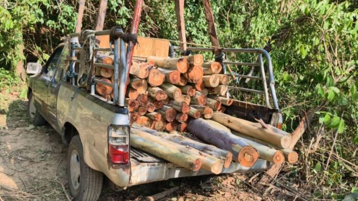 ขณะเข้าตรวจสอบ พบกลุ่มบุคคลกำลังตัดไม้และลำเลียงขึ้นรถกระบะ เมื่อเห็นเจ้าหน้าที่กลุ่มผู้กระทำผิดได้ทิ้งอุปกรณ์และวิ่งหลบหนีเข้าป่าไปคนละทิศละทาง เบื้องต้นสามารถควบคุมตัวผู้ต้องสงสัยไว้ได้ 1 ราย โดยผู้ต้องหาให้การปฏิเสธ อ้างว่าเป็นเพียงผู้รับจ้างขนไม้