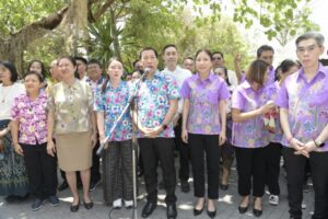 ในการนี้ นายเชษฐา โมสิกรัตน์ ผู้ว่าราชการจังหวัดนนทบุรี ได้กล่าวอวยพรให้แก่คณะข้าราชการและเจ้าหน้าที่ทุกคน โดยเน้นย้ำถึงความร่วมมือร่วมใจในการปฏิบัติราชการเพื่อบำบัดทุกข์บำรุงสุขให้กับประชาชนชาวนนทบุรี