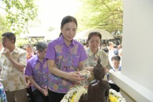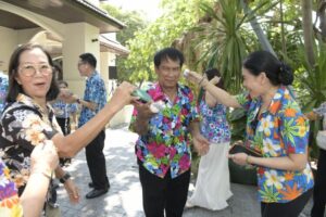 กรัตน์ นายกเหล่ากาชาดจังหวัดนนทบุรี เนื่องในเทศกาลสงกรานต์ ประจำปี 2569 เพื่อความเป็นสิริมงคลแก่ชีวิตในช่วงประเพณีสงกรานต์ ซึ่งถือเป็นวันขึ้นปีใหม่ของไทยตามประเพณีที่สืบทอดกันมาอย่างยาวนาน บรรยากาศเต็มไปด้วยความอบอุ่นและ
