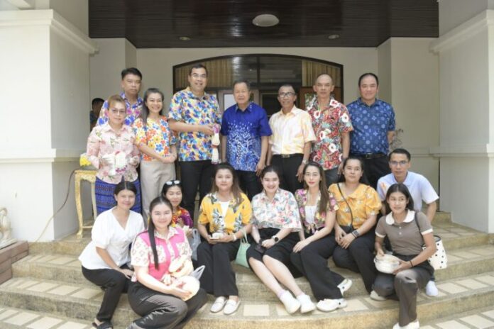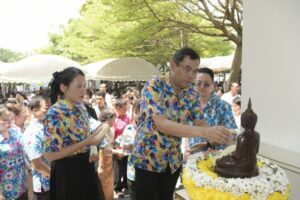 เพียงเพ็ญ รองผู้ว่าราชการจังหวัดนนทบุรี นำคณะข้าราชการ พนักงาน เจ้าหน้าที่ สมาชิกเหล่ากาชาด ผู้บริหารองค์กรปกครองส่วนท้องถิ่นและภาคเอกชน ร่วมในพิธีรดน้ำขอพร นายเชษฐา โมสิกรัตน์ ผู้ว่าราชการจังหวัดนนทบุรี และ นางจิราภรณ์ โมสิ