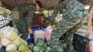 อย่างไรก็ตาม เจ้าหน้าที่สังเกตได้ถึงกลิ่นน้ำมันเชื้อเพลิงผิดปกติ จึงตรวจค้นอย่างละเอียด ก่อนพบแกลลอนบรรจุน้ำมันจำนวนมาก ถูกซุกซ่อนอยู่ใต้กองแตงโมบริเวณท้ายกระบะ จึงทำการตรวจยึดไว้เป็นของกลาง