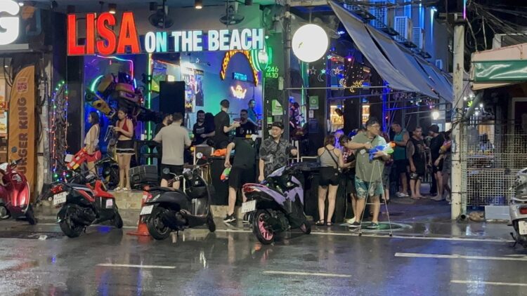 โดยเฉพาะกลุ่มนักท่องเที่ยวชาวต่างชาติจาก ยังคงออกมาร่วมเล่นสาดน้ำกันอย่างต่อเนื่อง เดินเล่นและสาดน้ำกันอย่างสนุกสนาน สร้างสีสันให้กับบรรยากาศท่องเที่ยวในเมืองพัทยา อย่างคึกคักไม่แผ่ว