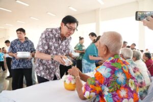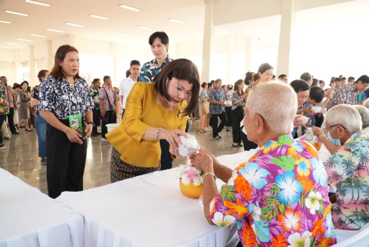 จากนั้น ผู้ว่าราชการจังหวัด พร้อมด้วยส่วนราชการและประชาชน ได้ร่วมสรงน้ำพระพุทธรูป และรดน้ำขอพรผู้สูงอายุ ณ ศาลาจัตุรมุข เพื่อความเป็นสิริมงคล เสริมสร้างขวัญกำลังใจ และสืบสานประเพณีอันทรงคุณค่าของไทยให้คงอยู่สืบไป