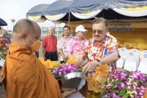 วันนี้ (13 เม.ย. 69) เวลา 07.00 น. ณ บริเวณริมเขื่อนท่าน้ำนนทบุรี นายเชษฐา โมสิกรัตน์ ผู้ว่าราชการจังหวัดนนทบุรี เป็นประธานในพิธีเปิดโครงการจัดงานประเพณีวันสงกรานต์ ประจำปี 2569 ครั้งที่ 85 พร้อมด้วย นางจิราภรณ์ โมสิกรัตน์ นายกเหล่ากาชาดจังหวัดนนทบุรี นางสาวญาณิพัชญ์ ศรีโคตร นายอำเภอเมืองนนทบุรี