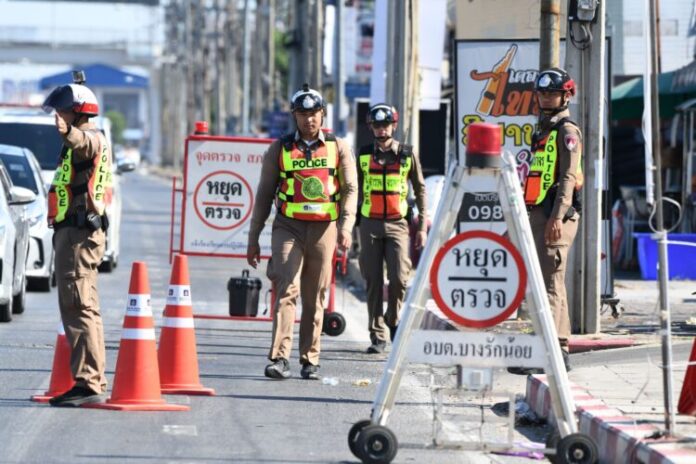 ผอ.รมน.จังหวัดนนทบุรี (ท.), พล.ต.ต.เดชรพี คงดี ผู้บังคับการตำรวจภูธรจังหวัดนนทบุรี และหัวหน้าส่วนราชการที่เกี่ยวข้อง ลงพื้นที่ตรวจเยี่ยมจุดตรวจหลักและให้กำลังใจเจ้าหน้าที่ผู้ปฏิบัติงานในช่วงเทศกาลสงกรานต์ พ.ศ. 2569 ในเขตพื้นที่อำเภอ