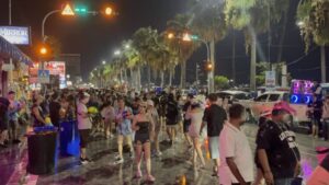 ผู้สื่อข่าวรายงานว่า บรรยากาศการเล่นน้ำสงกรานต์ในพื้นที่เมืองพัทยา โดยเฉพาะบริเวณแยกนิภาลอด ต่อเนื่องไปจนถึงซอย 7 และซอย 8 ถนนเลียบชายหาด เต็มไปด้วยนักท่องเที่ยวทั้งชาวไทยและชาวต่างชาติที่ออกมาร่วมสาดน้ำคลายร้อนกันอย่างคึกคัก