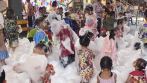 บรรยากาศเต็มไปด้วยความสนุกสนาน โดยเฉพาะกิจกรรมโฟมปาร์ตี้ที่ได้รับความสนใจจากเด็กและเยาวชนเป็นจำนวนมาก รวมถึงรถจากงานป้องกันและบรรเทาสาธารณภัยเทศบาลตำบลหัวสำโรง ที่ร่วมฉีดน้ำคลายร้อน เพิ่มความชุ่มฉ่ำตลอดทั้งงานและได้มีพิธีสรงน้ำพระตามประเพณี ซึ่งชาวตำบลหัวสำโรงและพื้นที่ใกล้เคียงต่างร่วมสืบสานกันมาอย่างต่อเนื่องทุกปี โดยในปีนี้มีประชาชนจากหลายพื้นที่เดินทางมาร่วมงานอย่างคับคั่ง ส่งท้ายเทศกาลสงกรานต์ของตำบลหัวสำโรงอย่างอบอุ่นในวันสุดท้ายของงานในปีนี้
