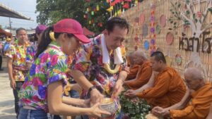 เมื่อเวลา 10.00 น.(วันที่ 16 เมษายน 2569) บรรยากาศงานประเพณีสงกรานต์ที่วัดหัวสำโรง ตำบลหัวสำโรง อำเภอแปลงยาว จังหวัดฉะเชิงเทรา เมื่อเป็นไปอย่างคึกคักโดย ทั้ง 12 หมู่บ้านในพื้นที่ได้ร่วมกันเปิดซุ้มจำหน่ายอาหารและสินค้าพื้นบ้านในราคาย่อมเยา เพื่อให้ประชาชนและนักท่องเที่ยวได้เลือกซื้อเลือกชิมกันอย่างทั่วถึงภายในงานมีอาหารหลากหลาย อาทิ ขนมไทย ผัดไทยโบราณ รวมถึงเมนูยอดนิยมอย่าง “สตรีมีหอยทอด” จำหน่ายในราคาเพียง 20 บาท น้ำสมุนไพรราคาประหยัดไม่ถึง 10 บาท