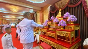 *****เมื่อวันที่ 18 เมษายน 2569 เวลา 10.00 น. พระบาทสมเด็จพระเจ้าอยู่หัว ทรงพระกรุณาโปรดเกล้าฯ ให้ พลเรือตรีสกาย เภกะนันทน์ หัวหน้าส่วนราชการพระตำหนักราชฤทธิ์รุ่งโรจน์ ปิยนาฎวชิรพัทธ์ เป็นประธานในพิธีเชิญผ้าไตรพระราชทาน