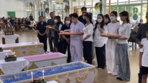 ไตรฌาปนกิจศพผู้วายชนโครงการบ้านหลังสุดท้าย 21 ศพ เมื่อวันที่ 19 เมษายน 2569 ที่วัดราษฎร์ประคองธรรม ต.เสาธงหิน อ.บางใหญ่ จ.นนทบุรี เนื่องด้วยวัดราษฎร์ประคองธรรม จัดทำโครงการบ้านหลังสุดท้ายรับศพผู้ยากไร ศพไม่มีญาติ