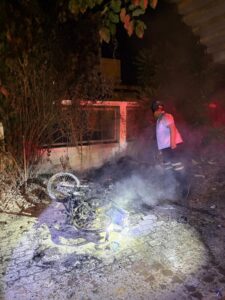 เบื้องต้นไม่พบผู้ได้รับบาดเจ็บหรือเสียชีวิต และไม่พบทรัพย์สินของผู้อื่นได้รับความเสียหาย จึงได้ตรวจซากรถจักรยานยนต์พร้อมอุปกรณ์ที่ตกหล่นไว้เป็นหลักฐาน พร้อมทั้งประสานเจ้าหน้าที่ชุดสืบสวนตรวจสอบภาพจากกล้องวงจรปิดบริเวณใกล้เคียง ตรวจสอบไม่พบกล้องในจุดเกิดเหตุโดยตรง และได้ประสานเจ้าหน้าที่พิสูจน์หลักฐาน 7 (ศพฐ.7) เข้าตรวจพิสูจน์สภาพรถเพื่อหาสาเหตุการเกิดเพลิงไหม้ต่อไป