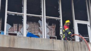 นายภาคภูมิ ชัยสันธนะ ทีมดับเพลิงมูลนิธิร่วมกตัญญู กล่าวว่า ตอนนี้หัวฉีดของเราเข้าไปในทุกชั้นแล้ว ไม่ว่าจะชั้น 1 ชั้น 2 หรือชั้น 3 ส่วนชั้น 4 ที่ได้มอนิเตอร์ดูแล้วจากทางด้านหน้าก็ยังมีบางส่วนที่ยังมีเพลิงลุกไหม้อยู่ ซึ่งไม่มีผลกับการทำงานของเจ้าหน้าที่ หลังจากนี้ทางเจ้าหน้าที่จะเพิ่มหัวฉีดเข้าไป อีกชั้นละ 1 หัวฉีด และต่อสายเข้าไปอีก 30 เมตร