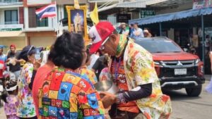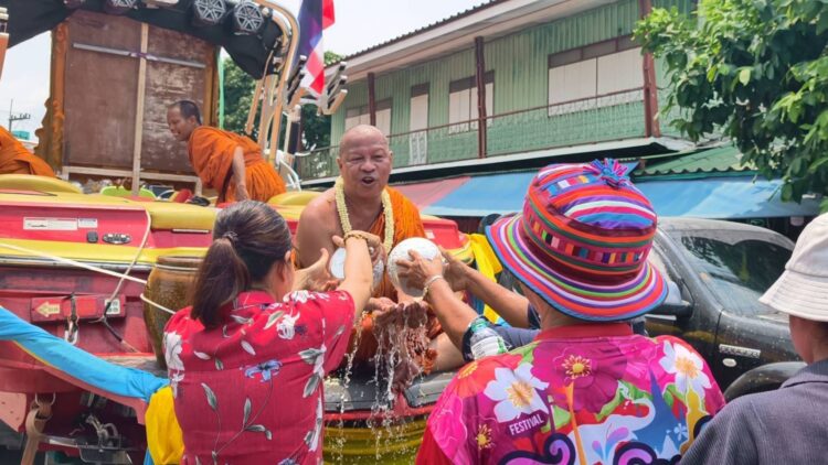 ขณะเดียวกัน ตลอดแนวถนนภายในชุมชน มีประชาชนและนักท่องเที่ยว ทั้งวัยรุ่นและครอบครัว ออกมาเล่นน้ำสงกรานต์กันอย่างสนุกสนาน บางส่วนขับขี่รถจักรยานยนต์ และรถกระบะบรรทุกถังน้ำออกเล่นน้ำ ส่งผลให้การจราจรติดขัดเป็นระยะทางยาว