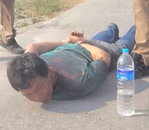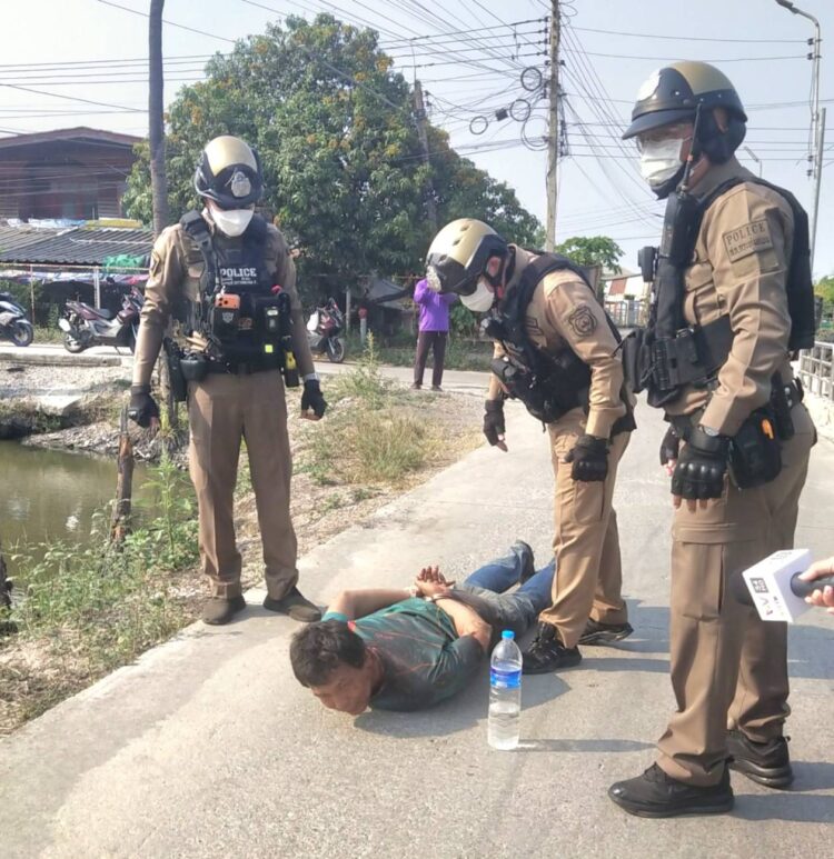 พ.ต.อ.พศพงศ์ มณฑาได้สั่งให้เจ้าหน้าที่ตำรวจกระจายกำลังเร่งออกตามตัวคนร้ายรายนี้มันที โดยชาวบ้านได้แจ้งเบาะแสมาว่าเห็นคนร้ายขี่รถจักรยานยนต์หลบหนีไปบริเวณริมคลองกำลังเจ้าหน้าที่จึงเร่งตามไป เมื่อคนร้ายเห็นเจ้าหน้าที่ตำรวจจึงได้ทิ้งรถ แล้วทำทีตีเนียนเป็นเดินสวนกลับมา แต่เจ้าหน้าที่ตำรวจไม่หลงกลคนร้าย พบว่าตามตัวคนร้ายเสื้อผ้าที่สวมใส่เปื้อนไปด้วยเลือด เจ้าหน้าที่ตำรวจจึงได้กรูกันเข้าไปทำการจับกุมนำตัวส่ง รตต.ณัฎฐิภัทร นาคสังข์พนักงานสอบสวน เพื่อทำการสอบปากคำผู้ต้องหา