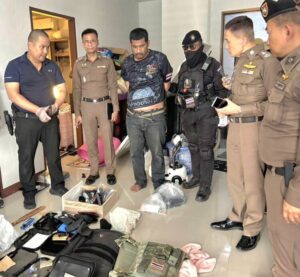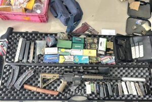 เมื่อเจ้าหน้าที่ตำรวจเข้าไปภายในถึงกับตะลึงพบอาวุธปืนจำนวนมากทั้งปืนสั้นปืนยาวถูกติดลำกล้องเก็บเสียงดัดแปลงให้ยิงได้แบบอัตโนมัติถูกวางไว้ตามจุดต่างๆทั่วทั้งบ้านพร้อมกระสุนอีกหลายร้อยนัด หลายขนาด เสื้อเกราะนอกกันกระสุนอีก2ตัว แถมยังพบยาบ้าอยู่ในถุงอีกหลายสืบเม็ด