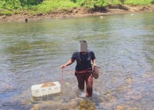จากการลงพื้นที่ เจ้าหน้าที่ได้ดำเนินการลาดตระเวนตรวจสอยรวม 3 จุด บริเวณลำแม่น้ำแควน้อย ในเขตตำบลท่าขนุน อำเภอทองผาภูมิ จังหวัดกาญจนบุรี โดยพบกลุ่มบุคคลลักลอบขุดหาแร่ทองคำจำนวนหนึ่ง กำลังทำการลักลอบขุดและร่อนหาแร่ทองคำอยู่