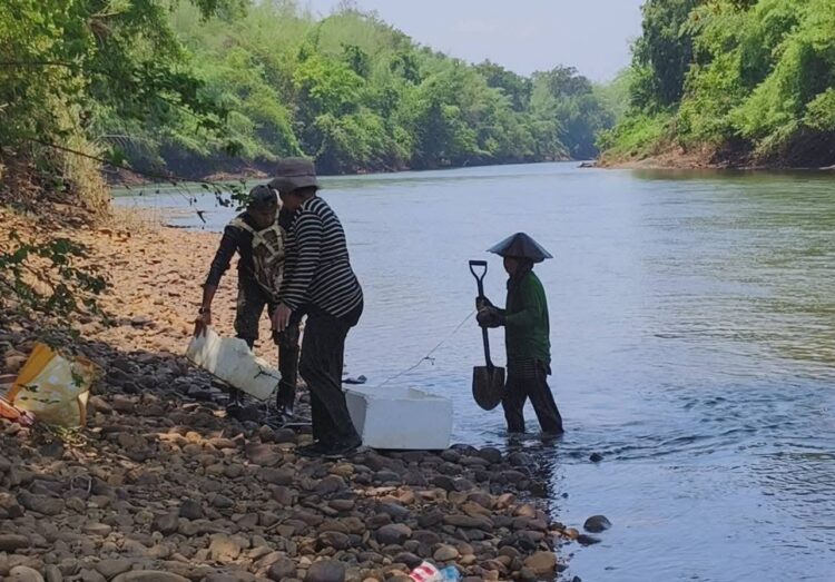 ผู้สื่อข่าวสองแควตะวันตกออนไลน์ รานงานว่า เมื่อเวลา 10.00 น วันอังคารที่ 28 เมษายน 2569 นายอนุสรณ์ สง่าแสง นายอำเภอทองผาภูมิ ได้สั่งการให้ นายยงยุทธ แสวงสุข ปลัดอำเภอทองผาภูมิ พร้อมด้วยสมาชิกกองอาสารักษาดินแดน(อส.) อำเภอทองผาภูมิที่ 9 ออกลาดตระเวนตรวจตราพื้นที่บริเวณเลียบแม่น้ำแควน้อยหลังจากได้รับรายงานว่ามีการลักลอบร่อนทองคำในแหล่งน้ำลำคลอง