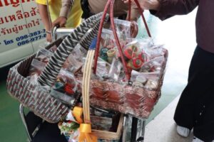 ในการนี้ เจ้าคุณแจ้ ได้นำแบรนด์รังนก ซึ่งเป็นสิ่งของที่สาธุชนได้นำมาถวายในงานพิธีฉลองอายุวัฒนมงคลครบ 64 ปีของท่านเมื่อวันที่ 18 เมษายน ที่ผ่านมา นำมาจัดทำเป็น “ชุดเยี่ยมผู้ป่วย” จำนวน